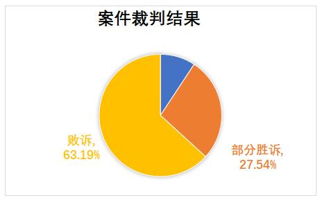 根据裁判文书网公布的商业秘密侵权案件,在2013年至2017年间,法院审判的侵犯商业秘密案件中,败诉率达到63.19%,部分胜诉占27.54%,胜诉仅占9.27%。